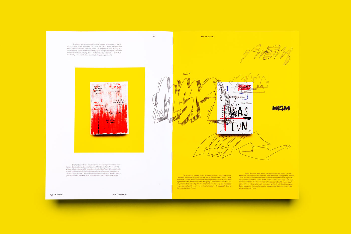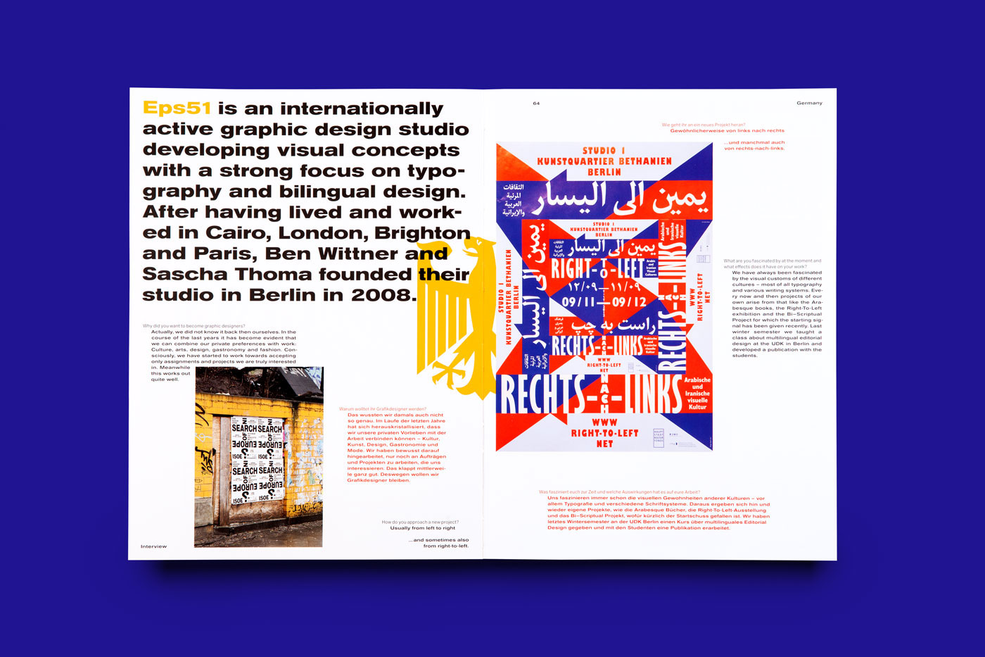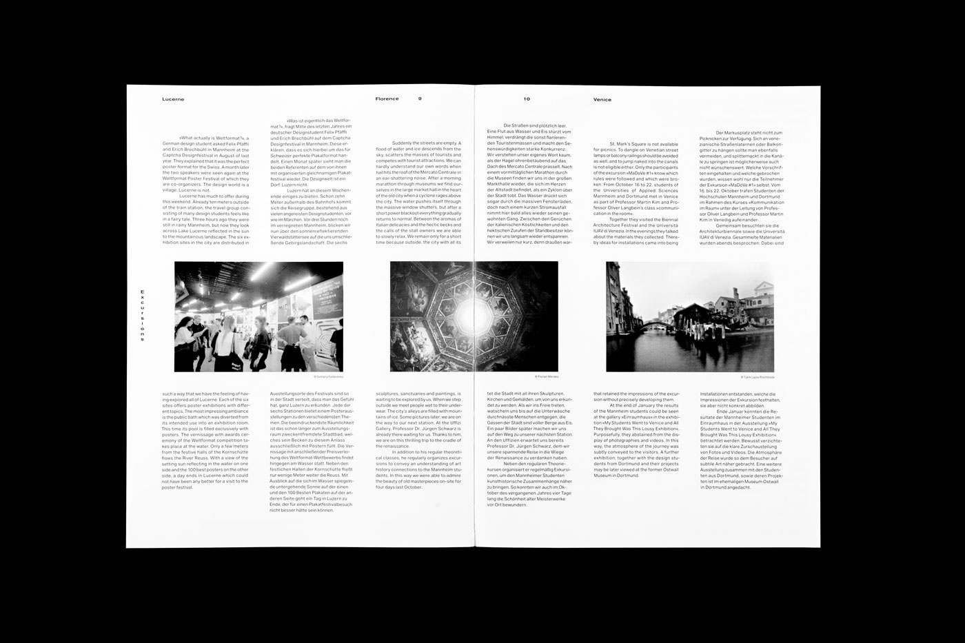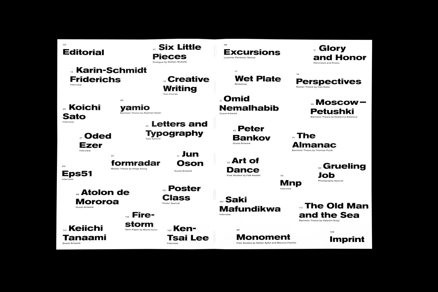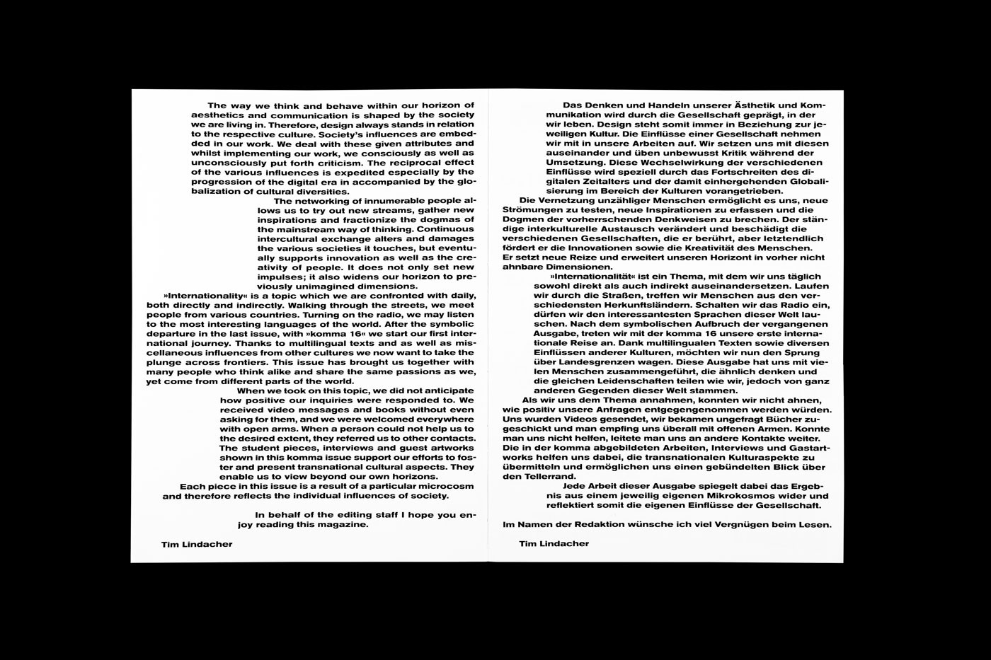 16th edition of the komma magazine we dare to go international. Several art works and interviews from various countries enrich this issue and show a colorful variety. Therefore, for the first time the magazine has been designed multilingual. All texts have been translated into English or are kept in the respective native language of the designers. To mirror the openness shown to us by international designers, we decided for an open spine which at the same time refers to the vulnerability of international relations. To