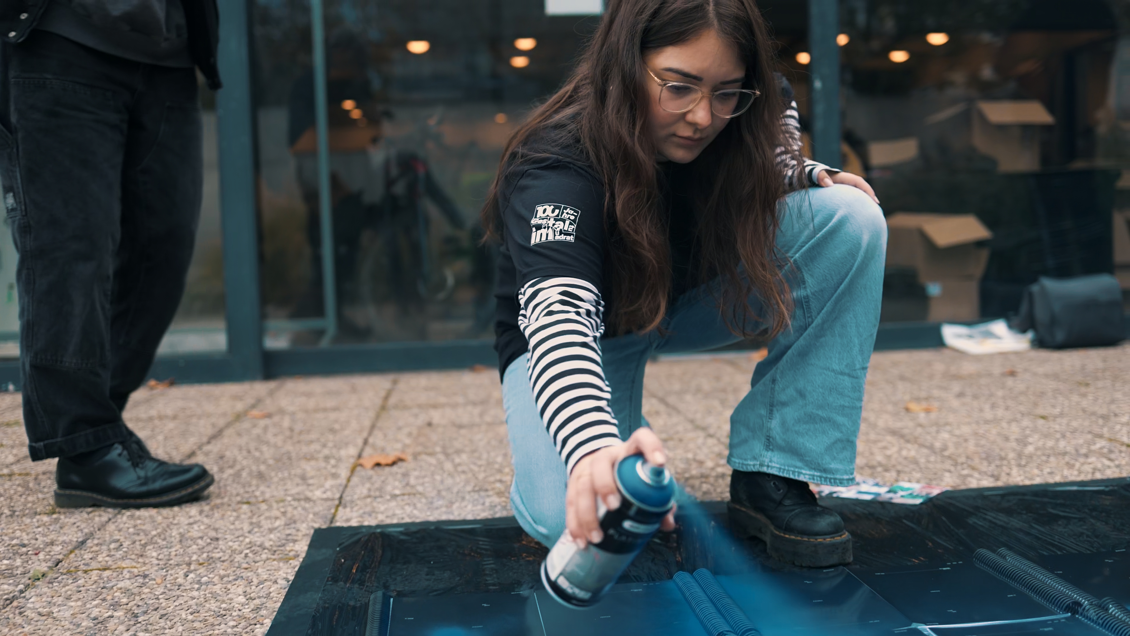 The magazine’s standout feature is affectionately called the “chunky plastic spiral,” along with colorful chapter dividers that segment the content. The cover begins in symbolic solid black, transitions to vibrant colors inside, and concludes with a white back cover. As part of the launch event, several covers were spray-painted with red, blue, and green paint, forming a collective artwork. Throughout the rest of the exhibition, visitors were invited to take creative control, customizing their own copies as they pleased.
